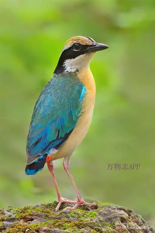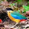 蓝翅八色鸫以身体具有红、绿、蓝、白、黑、黄、褐、栗等鲜艳夺目,丰富艳丽的色彩而得名,是很有观赏价值的鸟类。实际它身上所具有的颜色不止八种色彩,头部前额至枕部为深栗褐色,冠纹黑色,眉纹呈茶黄色,眼先、颊、耳羽和颈侧都是黑色,并与冠纹在后颈处相连,形成领斑状。背部为亮油绿色,翅膀、腰部和尾羽为亮粉蓝色。下体呈淡茶黄色,腹部中央至尾下覆羽都是猩红色。在丛林之中,它身上的这些斑斓的羽色与阳光、绿叶、紫花、白蕊等大自然的色彩融合在一起,因而也成为一种特别的保护色。