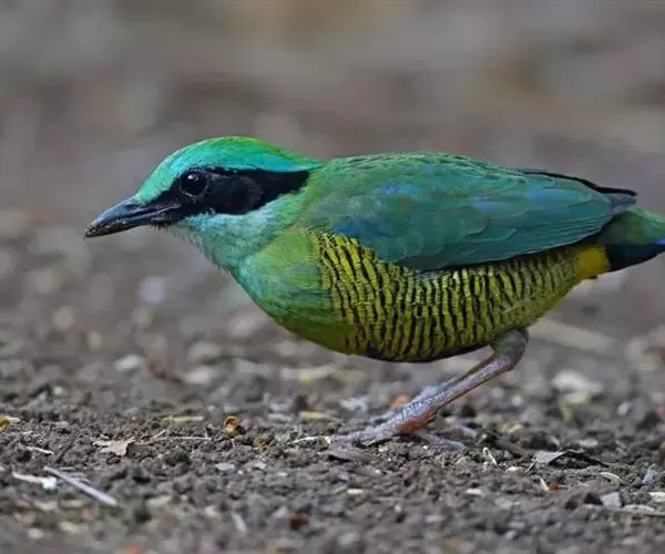 蓝翅八色鸫是一种小型的鸟,嘴强,长而侧扁,颈部短,鸣管内肌两对附着于支气管半环的中部。尾羽很短,腿特长而坚强,表面平滑。