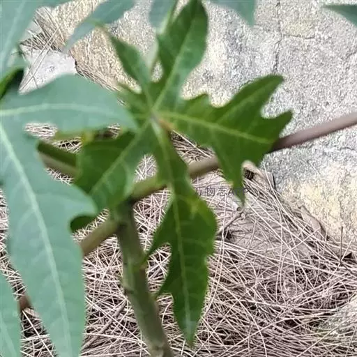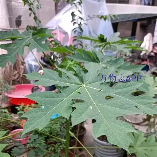 叶大,聚生于茎顶端,近盾形,直径可达60厘米,通常5-9深裂,每裂片再为羽状分裂;叶柄中空,长达60-100厘米。 番木瓜