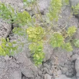 主要为害根颈及根部,育苗期和刚定植不久的小苗较容易感病。特别是苗地及栽培地块过于潮湿或排水不良造成积水,土壤粘性大更易感染此病。植株发病初在茎基部呈水渍状,后变褐腐烂,叶片枯萎,植株枯死,根变褐坏死。