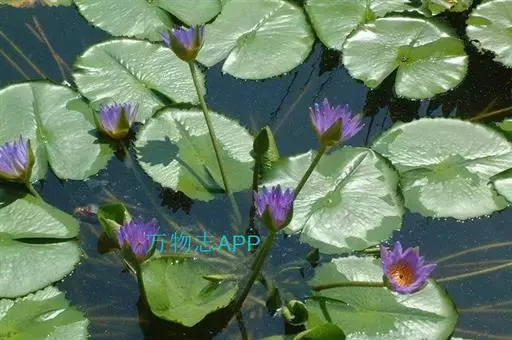 埃及蓝睡莲:是多年生水生草本;根状茎肥厚。叶二型:浮水叶圆形或卵形,基部具弯缺,心形或箭形,常无出…