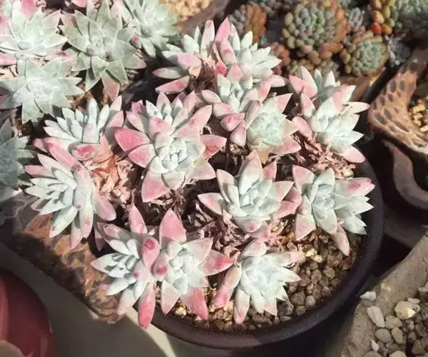 花乃井是景天科拟石莲花属的多肉植物,原产于墨西哥。株型小巧,叶片饱满,在阳光充足、温差大的环境下叶…