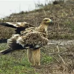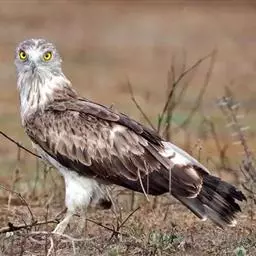 白肩雕:又名御雕,是大型猛禽。体长73-84厘米。体羽黑褐色,头和颈较淡,肩部有明显的白斑,在黑褐…