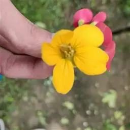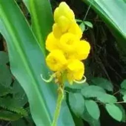 花序顶生和腋生,具长梗,单生或分枝,长10-50cm;花直径约2.5cm,芽时为长椭圆形、膜质的苞片所覆盖;花瓣黄色,有明显的紫色脉纹;位于上部的3枚雄蕊退化,7枚雄蕊发育,下面二枚的花药大,侧面的较小。