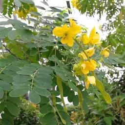 翅荚决明 Roxb.)是豆科决明属灌木植物,高3米。羽状复叶,在叶柄和叶轴上有窄翅;小叶倒卵状长圆形,…