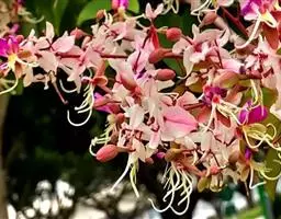 腊肠树:落叶乔木,高可达15米;枝细长;树皮灰色,老时粗糙,暗褐色。叶长30-40厘米,小叶对生,…