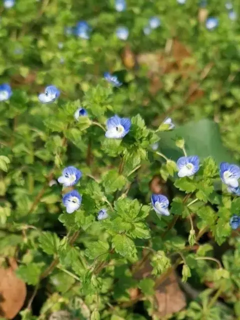 婆婆纳一年至二年生草本植物,有短柔毛。有蓝、白、粉三种颜色。茎自基部分枝,下部匍匐地面。…