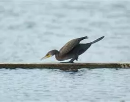 双冠鸬鹚是鹈形目鸬鹚科的鸟类,鸟嘴强而长,上嘴两侧有沟,嘴端有钩,适于啄鱼;下嘴基部有喉囊;鼻孔小,…