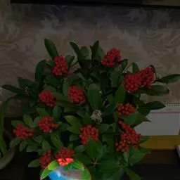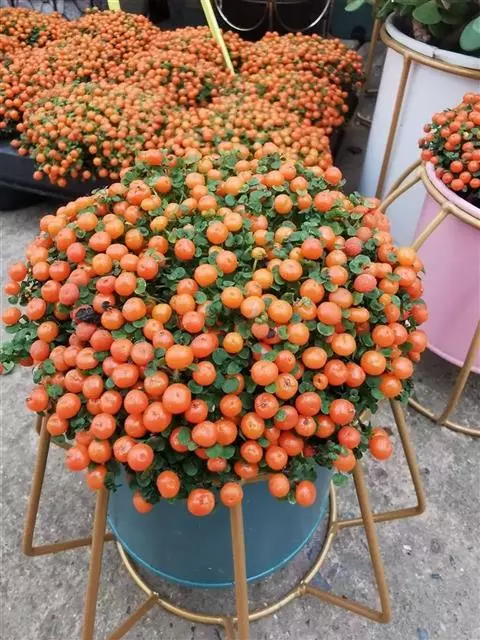 常绿灌木或小乔木。叶椭圆形,两端尖。果扁圆形,朱红色;味甜,可食。产自中国东南部,广东地区大量盆栽。