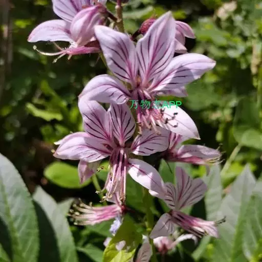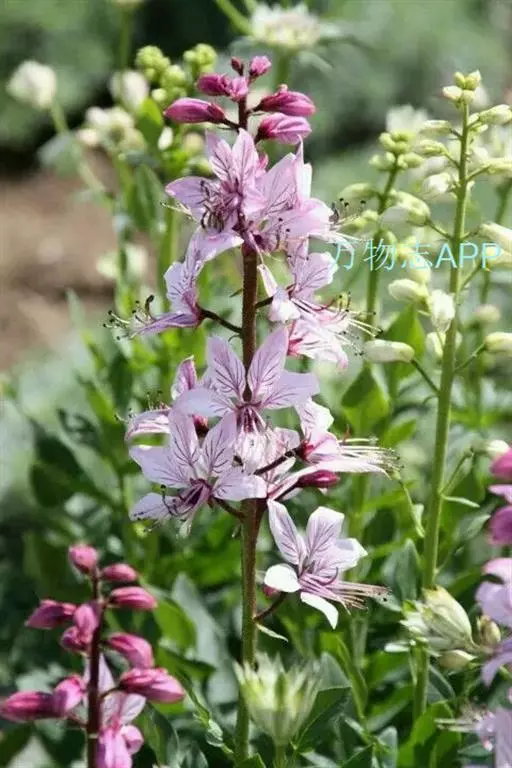 总状花序长可达30厘米;花梗长1-1.5厘米;苞片狭披针形;萼片长6-8毫米,宽2-3毫米;花瓣白带淡紫红色或粉红带深紫红色脉纹,倒披针形,长2-2.5厘米,宽5-8毫米;雄蕊伸出于花瓣外;萼片及花瓣均密生透明油点。