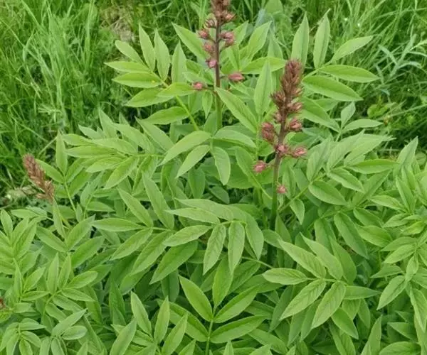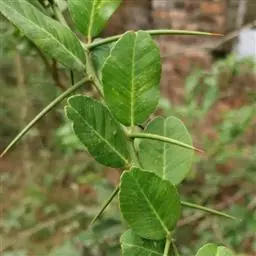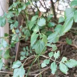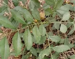 叶有小叶9-13片,小叶对生,无柄,位于顶端的一片则具长柄,椭圆至长圆形,长3-12厘米,宽1-5厘米,生于叶轴上部的较大,叶缘有细锯齿,叶脉不甚明显,中脉被毛,成长叶的毛逐渐脱落;叶轴有甚狭窄的冀叶。