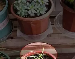 方法一 准备好兰盆及植料后,将兰株倒拿(根在上,叶在下)放于水龙头下以慢水冲洗,但水压切忌过强,以免伤兰根及叶子。用拇指和食指抓住兰头,小指抵住盆缘,用竹筷将根固定,当放入盆内时,尽量不要让根接触到盆壁。将豆粒大的混合石砾倒入盆底至三分之一处。然后倒入中粒植料至五分之四处,填实和尽量不要留下空间。将竹筷拔出,并摇实盆中植料。填实植料后,再用大粒植料埴入至距盆缘1.5厘米处。最后再倒入豆粒大植料,以将假鳞茎全部埋入土中为度,然后充分摇实。用压土工具轻压植料,并将表面弄平。种植完毕后,植料在盆中以中央稍高为好。