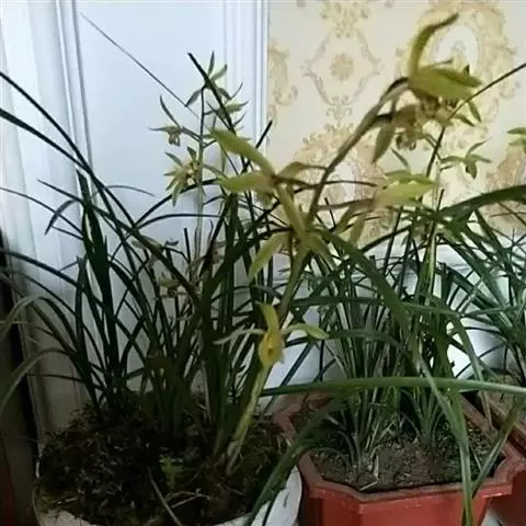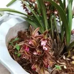 上盆(或翻盆)时间一般在春季3-4月或秋季10-11月。花盆以口小、盆深、底孔大的为佳。新从山上挖来的野生苗需理植于瓦盆(泥盆)中,这样兰花泥易干,通气性好.容易发根;2-3年后方可换人紫砂盆或瓷盆。兰花种植(在盆中)的方法与一般花卉不同,尤其是名种兰花,翻种移盆必须洗根。方法足将根浸入清水中,用旧牙刷或毛笔轻轻洗刷,切勿用力过大伤根;用剪刀将残叶、黄叶、断裂根、发黑腐烂根剪去,注意勿伤幼芽。然后将处理好的植株放在阴凉通风处晾干,待根部发白并显细小皱纹柔软时,再植入盆中。