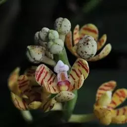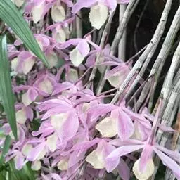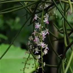 红花隔距兰 Garay):植株通常悬垂。茎细圆柱形,长达70厘米,粗3-4毫米,分枝或不分枝,…
