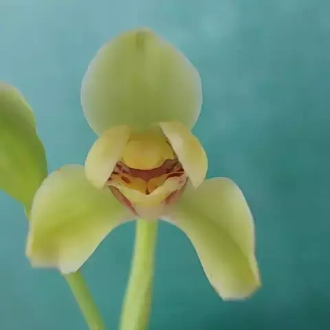 花瓣与萼片相似,常略宽于萼片;唇瓣近基部3裂;侧裂片直立,近长圆形或卵状长圆形,长3-3.5毫米,宽约3毫米;中裂片卵状椭圆形,凹陷,长8-10毫米,宽6-7毫米,先端急尖,边缘近全缘并多少内卷,内面常有4-6条紫红色的纵脊,纵脊皱波状;距粗大,长5-8毫米,宽4-5毫米,末端浑圆;蕊柱粗短,长6-7毫米。花期8-9月。