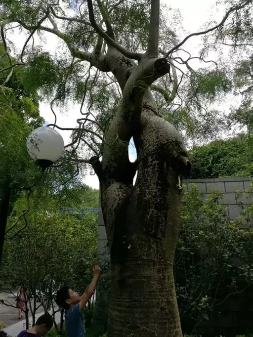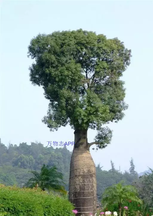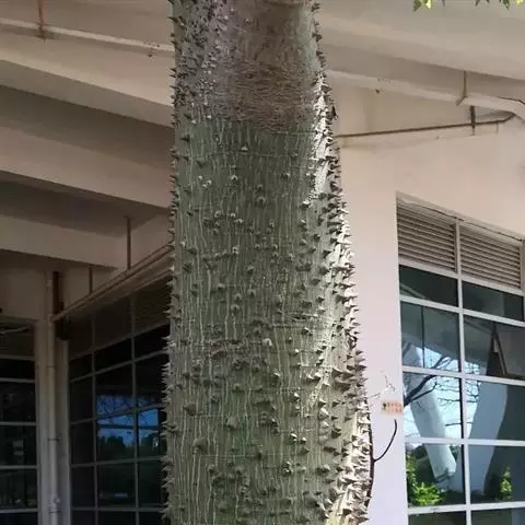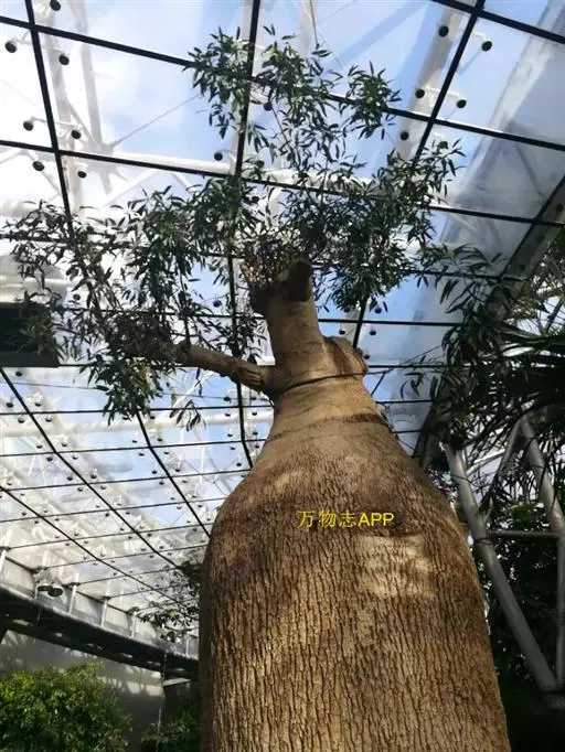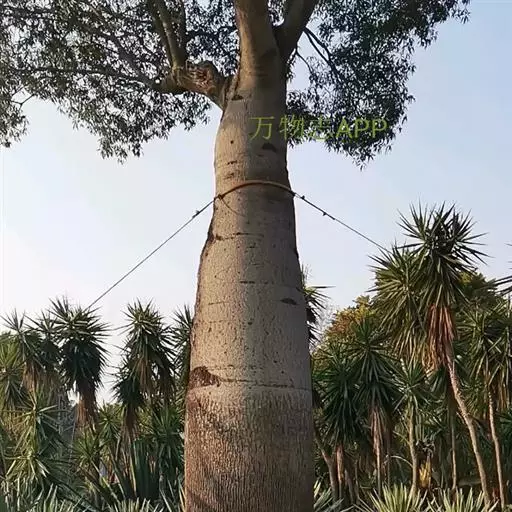 瓶树,原产南美,别名也叫纺锤树Cavanillesia-arborela,属,外形与本植物相似,是不同植物在类似生态环境上相同适应造成的。纺锤树生长在南美洲的巴西高原上,远远望去很像一个个巨型的纺锤插在地里。纺锤树有30米高,两头尖细,中间膨大,最粗的地方直径可达5米,里面贮水约有2吨。雨季时,它吸收大量水分,贮存起来,到干季时来供应自己的消耗。