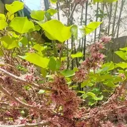 瓶树的叶型由披针形至掌状,有极大的变异,苗木时为深裂的掌状叶,成株逐渐转变以披针形的叶为主,花似风铃,成熟的蓇葖果开裂为船型,花果隐蔽在枝叶中,并不明显。树干上半部的树皮仍保持绿色,具有行光合作用的功能,下半部的树皮龟裂,触感相当坚硬。 肉质灌木,茎干矮肥,肉质,基部膨大。叶掌状盾形,3裂至5裂,叶痕大。花聚生于枝顶,橙红色,五瓣,花梗分枝似珊瑚。株高40 - 50厘米,茎干基部膨大呈卵圆状棒形,上部二歧分枝,叶6-8片簇生于枝顶,盾形,3浅裂,光滑,稍具蜡质白粉。花序重复二歧分枝,长约15厘米,花鲜红色。 叶子碧绿碧绿的,造型独特,每片叶子都分出五个叶面,四个叶面两两相对,还有一个独立在他们的上面,远远看去就好像小巧玲珑的扇子。每到四月,它就会开花。火红火红的小小的花瓣从茂盛的枝叶间探出头来张望这美丽的世界,它好象在说:“时间多美丽呀!” 瓶树最有趣的是它的枝干。圆鼓鼓的,好似弥勒佛的大肚子一样!它株形奇特,一年四季开花不断,是中国栽培已久的室内盆栽佳品。