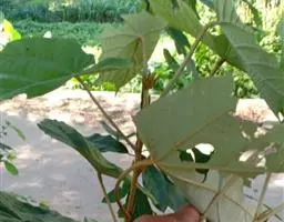 (1)在春、秋季的清晨或下午4:00以后,选带膨大球茎的佛肚树作为接穗,连根挖出,去掉部分叶,保留球茎下15~20厘米主根,其余剪除,冲冼净泥土,放在荫凉处风干水分;待其表面水份风干后,就可用来嫁接; (2)采用劈接法嫁接,以成活的高大膏桐为砧木,根据希望嫁接的位置、茎粗大小来选择接穗,选好砧木和接穗后,在适当的位置截干,沿中线纵劈开至恰当的深度,把接穗球茎下的主根削成契形,长为9~11厘米,插入劈开的砧木,将形成层对齐,插紧; (3)用宽1.5~3厘米的塑料绑扎带扎结实,接穗和砧木紧紧连成一体,并注意接口防水; (4)待接口完全愈合自然增粗,约6个月后绑带影响到嫁接后的植株生长时再解出绑带,保证接口粘牢; (5)依上述步骤在膏桐的各枝上进行嫁接,这样膨大球茎就移到膏桐树上成为一棵新的植株共同生长