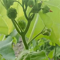苘麻锦葵科苘麻属一年生亚灌木草本植物。茎秆较高,上面有柔毛;叶子较大且有纹路,浅绿色,边缘不平整,…