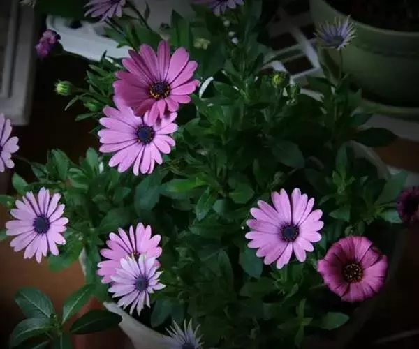 蓝目菊别名非洲雏菊、大花蓝目菊。原产南非,不耐寒.忌炎热,适宜温度18℃~26℃,喜向阳环境。宜排水良好的土壤。菊科菊属多年生草本植物,常作一年生栽培。