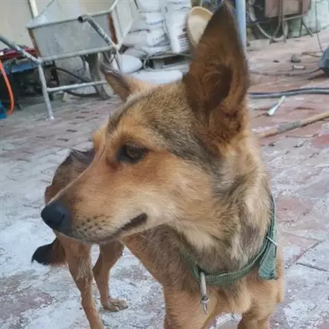 长、强壮、口吻宽阔,但很文雅。整个脸的外观呈椭圆形,面部没有表情 牛头梗 或有凹痕。侧面观,其颅顶部到鼻端呈微微向下的凹陷。耳间和额头的部位平整。鼻端到双眼的距离大于眼到头顶的距离。下颔长而且轮廓分明。唇——整洁而紧闭,牙齿——对齐或呈剪状咬合,剪状咬合的犬上齿在下齿之前或与下齿对合整齐。牙齿应该健全,强壮有力,且规则。耳——小而薄的耳朵紧紧挨着。当耳朵向上时,两只耳朵能完全直立。眼——眼睛下陷,颜色深,一双歪着的小三角眼闪烁着敏锐的光;两眼间距很近,位于头的上部。蓝眼睛不符合标准。鼻子——鼻黑,鼻梁自然弯曲到鼻端。