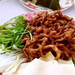 京酱肉丝,是一道知名度很高的菜肴,它是北京菜中的经典代表菜之一。制作时选用猪瘦肉为主料,辅以甜面酱…