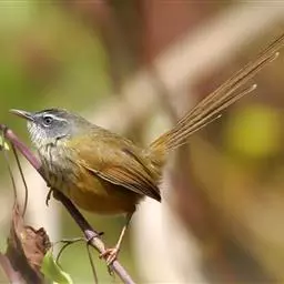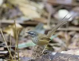 金头扇尾莺体小而具褐色纵纹的莺。嘴细长,略向下弯;翼短,体型娇小,尾长。下体皮黄,喉近白,尾深褐,…