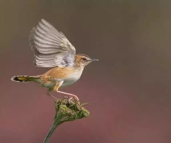 棕扇尾莺是扇尾莺科扇尾莺属的小型鸟类,体长9~11厘米。上体栗棕色具粗著的黑褐色羽干纹和棕白色眉纹,…
