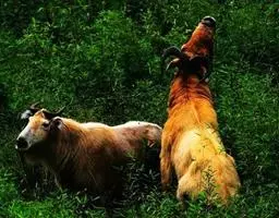 羚牛,偶蹄目牛科羚牛属哺乳动物,俗称扭角羚、野山牛、盘羊。其体形粗壮。尾短。吻鼻部隆起且裸露。…