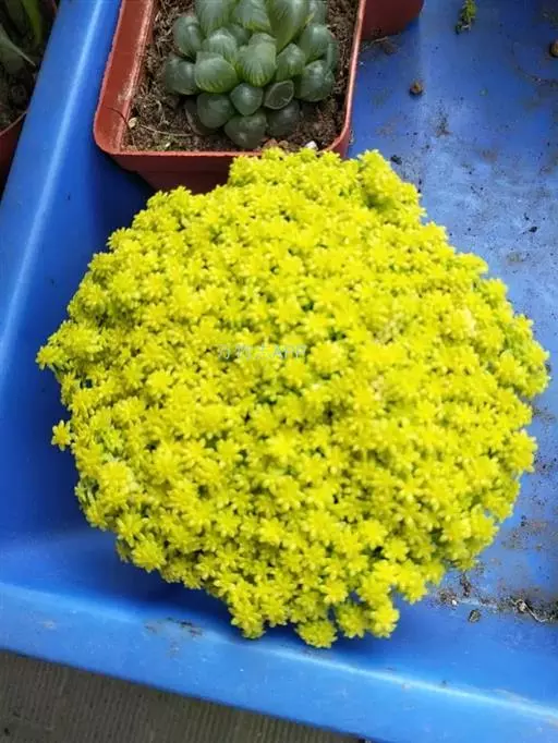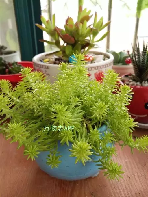 金万年草是景天科景天属植物,光照充足时金黄的颜色非常靓丽是作为花盆边缘的点缀的很好选择。黄金万年草据说原种叶片浓绿色,本种是叶片黄化的园艺品种,所以会出现返祖的现象。