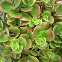 圆叶景天,景天科常绿多年生肉质草本植物,匍匐型生长,叶片对生,尖端钝圆,全光照条件下,叶片秋季变红,…