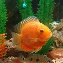 金菠萝鱼,Cichlasoma severum,慈鲷科丽体鱼属。成鱼体长20~25cm,厚侧扁形,…