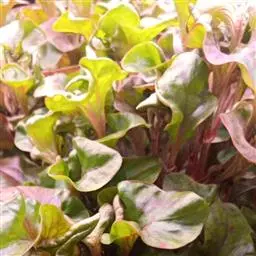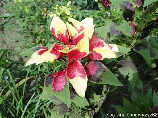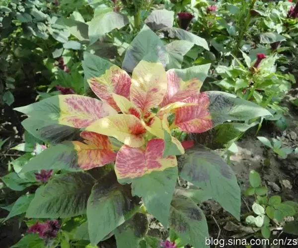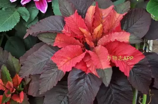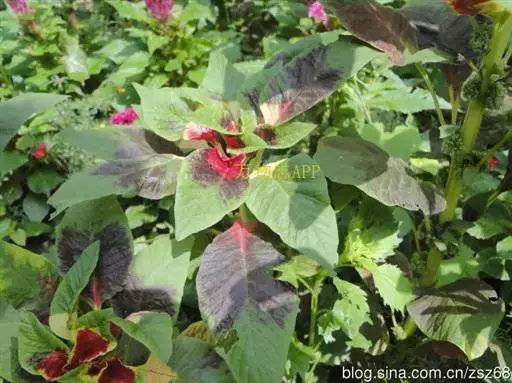下部叶对生,上部叶互生,宽卵形、长圆形和披针形,长2-7.5厘米,顶端锐尖,基部渐狭或半抱茎,全缘,叶面有柔毛;原产地为亚洲热带地区。雁来红为苋科一年生草本植物,株高80—100厘米,茎直立,少分枝。叶互生,菱状卵形至披针形。花极小,穗状花序族生于叶腋间,种子黑色有光泽。原产印度。我国各地有栽培。