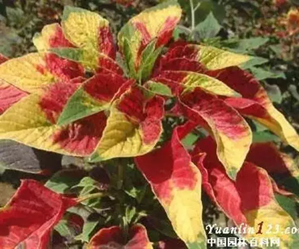 雁来红,别名老来少、三色苋、叶鸡冠、老来娇、老少年。拉丁文名Amaranthus tricolor,一年生草本,茎直立,高14-45厘米,单一或分枝,被腺毛。