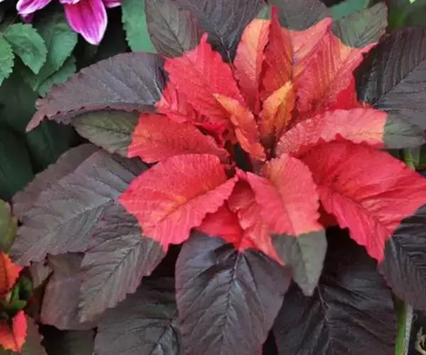 雁来红幼苗很像苋菜,但到了深秋,其基部叶转为深紫色,而顶叶则变得猩红如染,鲜艳异常。由于叶片变色正值“大雁南飞”之时,人们便给它取个美丽的名字——雁来红。