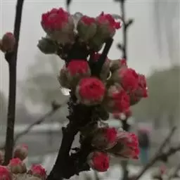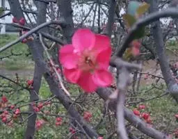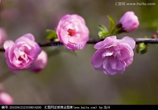 (4)鸾枝榆叶梅:花朵小,密集生在枝上,花色呈玫瑰紫红,半重瓣或重瓣,花菩10片,其5片为三角形,5片为披针形。植株小枝呈紫红色,光滑.