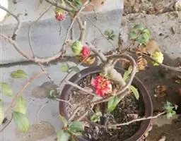 (2)重辨榆叶梅:开红褐色花,花朵大,重瓣,花朵多而密集,花萼10片以上,花萼和花梗均带有红晕。重瓣榆叶梅,枝条皮多开裂。因其花朵大,故又称“大花榆叶梅”,是一种观赏价值较高的品种.