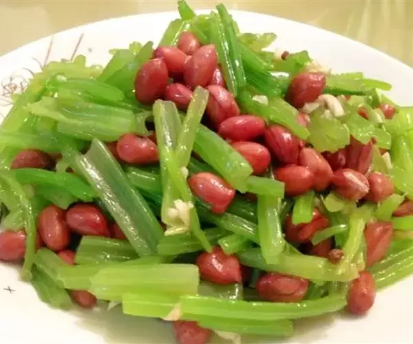 芹菜花生是一道家常菜肴,对肝脏有好处