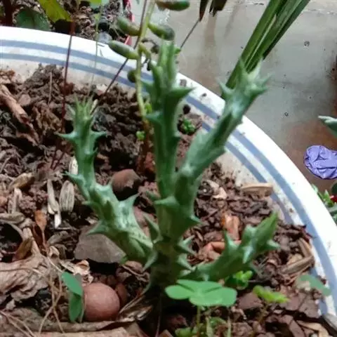 紫龙角植株小巧玲珑,肉质茎长满龙角状突起,开出星状花,非常奇特耐观。盆栽摆放案头、书桌或博古架,显得十分古朴典雅,像是一件有生命的“小摆件”。