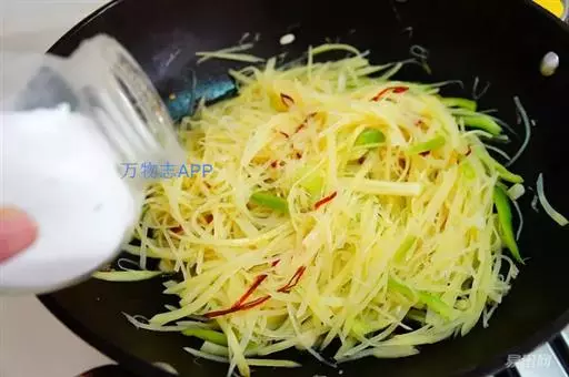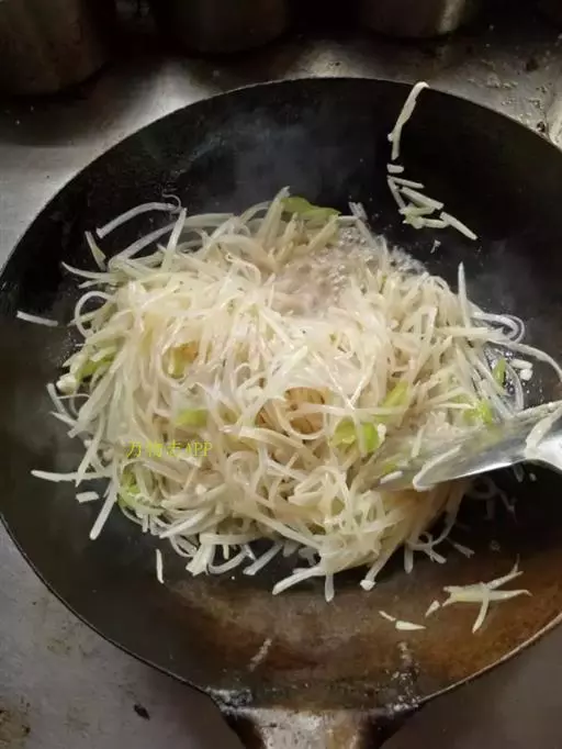 2.炒锅注油烧热,下葱,姜丝爆锅,下入三丝翻炒,加味精,精盐炒匀,淋香醋出锅即可。