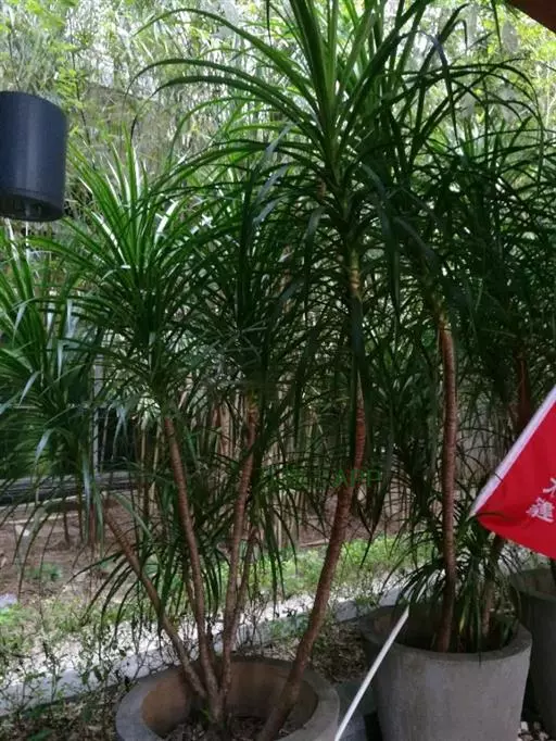 当小苗长至4-5厘米,4片叶时,便可移入营养杯中进行培育,因龙血树无明显主根,营养杯规格为高10厘米,口径为10-12厘米,基质最好以表土加细砂按1:1配比,有利于幼苗的正常生长。龙血苗期生长缓慢,一般一年苗高只有25-30厘米左右。要注意追肥,移入营养杯后3个月内主要施氮肥,以1:600倍水尿素,每7天施一次,有利于根系发育促进养分良性循环,3个月后开始施复合肥,以利用调整茎干生长。幼苗经过约18个月的栽培,苗高40厘米左右时即可装盆。目前龙血树实生苗多用于盆栽,作为室内或庭院的观赏植物,大田栽培的还较少。