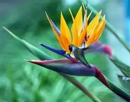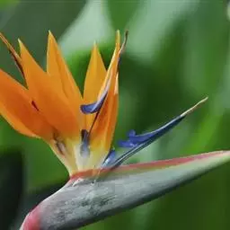 鹤望兰,别名天堂鸟,为鹤望兰科鹤望兰属的一种多年生草本植物;无木质树干;花序生于与叶柄近等长或稍短的花序梗上,佛焰苞1;花较小,萼片橙黄色,长7.5-10厘米,箭头状花瓣基部具耳状裂片,暗蓝色;花期在冬季。该物种原产非洲南部,在中国南方大城市的公园、花圃有栽培,北方则为温室栽培。性喜温暖湿润、阳光充足的气候,适宜生长的温度为25℃左右,耐干旱、较耐寒、不耐水湿,要求疏松肥沃、排水良好,以土层深厚的沙壤土为宜。因花形美丽似鹤,花开时犹如仙鹤翘首远望,花朵寿命亦长,故中文名为鹤望兰。鹤望兰素有“鲜切花之王”的美誉,是一种名贵的观赏花卉,深受广大消费者喜爱。同时,鹤望兰也宜大盆栽植,布置在公园、客厅、会议室、展厅候机室等处。鹤望兰是美国洛杉矶市的官方花卉象征。