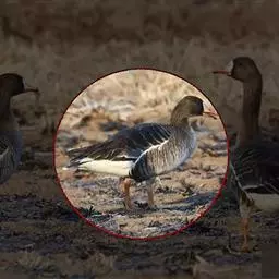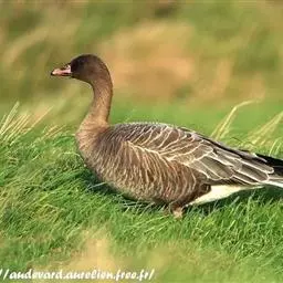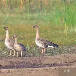 豆雁,雁形目鸭科。成鸟头、颈、背灰褐色,带淡黄色羽缘;尾上覆羽白色,尾羽黑褐色带白端,…