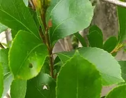 常绿灌木或小乔木,高达8米。 叶光亮革质,倒卵形或窄长椭圆形,长3-6厘米,宽2-3厘米。 聚伞花…