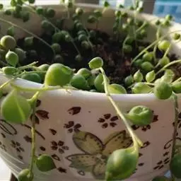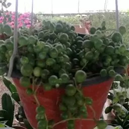 翡翠珠,是菊科千里光属的多年生常绿肉质草本植物。茎纤细,全株被白色皮粉;叶互生,较疏,圆心形,深绿色,…