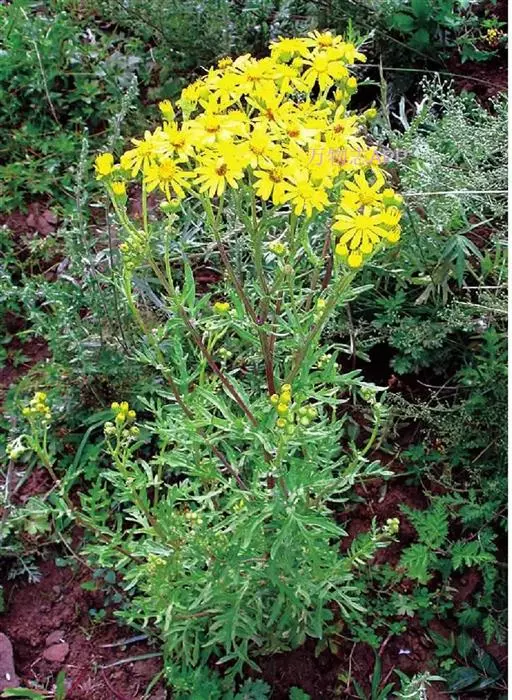 多年生根状茎草本,根状茎斜升,径7毫米,具多数纤维状根。茎单生,直立,30-60(80)厘米,被蛛丝状柔毛,有时多少脱毛,上部有花序枝。基生叶和下部茎叶在花期枯萎,通常凋落;中部茎叶较密集,无柄,全形卵状长圆形至长圆形,长6-10厘米,宽3-6厘米,羽状全裂至羽状深裂,顶生裂片小而不明显,侧裂片约6对,狭披针形或线形,长1-2.5厘米,宽0.1-0.5厘米,钝至尖,边缘具1-2齿或狭细裂,或全缘 额河千里光 ,稍斜升,纸质,上面无毛,下面有疏蛛丝状毛,或多少脱毛,基部具狭耳或撕裂状耳;上部叶渐小,顶端较尖,羽状分裂。头状花序有舌状花,多数,排列成顶生复伞房花序;花序梗细,长1-2.5厘米,有疏至密蛛丝状毛,有苞片和数个线状钻形小苞片;总苞近钟状,长5-6毫米,宽3-5毫米,具外层苞片;苞片约10,线形,长3-5毫米,总苞片约13,长圆状披针形,宽1-1.5毫米,尖,上端具短髯毛,草质,边缘宽干膜质,绿色或有时变紫色,背面被疏蛛丝毛。舌状花10-13,管部长4毫米;舌片黄色,长圆状线形,长8-9毫米,宽2-3毫米,顶端钝,有3细齿,具4脉;管状花多数;花冠黄色,长6毫米,管部长2-2.5毫米,檐部漏斗状;裂片卵状长圆形,长0.7毫米,尖。花药线形,长2毫米,基部有明显稍尖的耳,附片卵状披针形;花药气颈部较粗,向基部膨大。花柱分枝长0.7毫米,顶端截形,有乳头状毛。瘦果圆柱形,长2.5毫米,无毛;冠毛长5.5毫米,淡白色。花期8-10月。 额河千里光 本种外形与上种极为相似,但主要以头状花序较小,总苞长5-6 毫米,宽3-5毫米;总苞片尖且常有蛛丝状毛,无明显的脉;全部小花的瘦果无毛相区别。叶的裂也较狭。