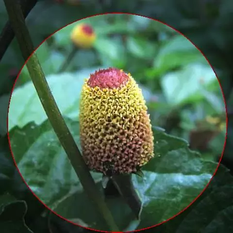 雌头状花序无花序梗,在雄头花序下面或在下部叶腋单生,或2-3个密集成团伞状,有1个无被能育的雌花,总苞闭合,具结合的总苞片,倒卵形或卵状长圆形,长4-5毫米,宽约2毫米,顶端有围裹花柱的圆锥状嘴部,在顶部以下有4-6个尖刺,稍被糙毛;花柱2深裂,丝状,伸出总苞的嘴部。