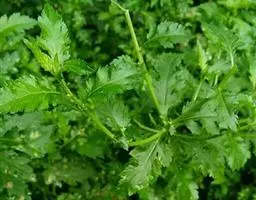 豚草是一年生草本植物,高20-150厘米;茎直立,上部有圆锥状分枝,有棱,被疏生密糙毛。下部叶对生,具短叶柄,二次羽状分裂,裂片狭小,长圆形至倒披针形,全缘,有明显的中脉,上面深绿色,被细短伏毛或近无毛,背面灰绿色,被密短糙毛;上部叶互生,无柄,羽状分裂。