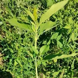 豚草(学名:Ambrosia artemisiifolia L.):一年生草本,高20-150厘米;茎直立,上部有圆锥状分枝,有棱,被疏生密糙毛。下部叶对生,具短叶柄,二次羽状分裂,裂片狭小,长圆形至倒披针形,全缘。上面深绿色,被细短伏毛或近无毛,背面灰绿色,被密短糙毛。雄头状花序半球形或卵形,径4-5毫米,具短梗,下垂,在枝端密集成总状花序。总苞宽半球形或碟形;花冠淡黄色,长2毫米,有短管部,上部钟状,有宽裂片。瘦果倒卵形,无毛,藏于坚硬的总苞中。花期8-9月,果期9-10月。