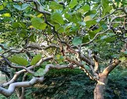 乔木,高达20米;树皮暗灰色,粗糙;小枝幼时密被白色短柔毛。叶互生排为2列,皮纸质,长圆形或倒卵状披针形,有时椭圆形,长4-8厘米,宽2.5-3厘米,先端渐尖为尾状,基部楔形,略下延至叶柄,全缘,(幼枝的叶常分裂或在上部有浅锯齿),表面深绿色,疏生短毛,背面被苍白色粉沫状毛,脉上更密,侧脉4-7对,表面平,背面不突起,网脉明显;叶柄长8-14毫米,被毛;托叶钻形,脱落。